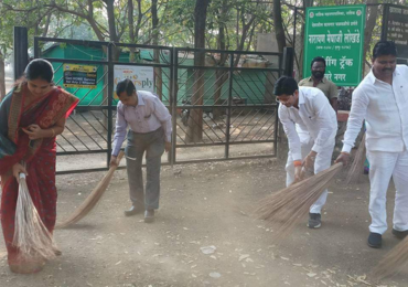 स्वच्छतेचा संदेश देण्यासाठी सार्वजनिक उद्यान व जॉगिंग ट्रॅक येथे स्वच्छता करताना.