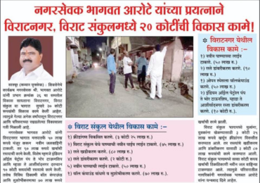 विराट नगर आणि विराट संकुल मध्ये 20 कोटींची विकास कामे.